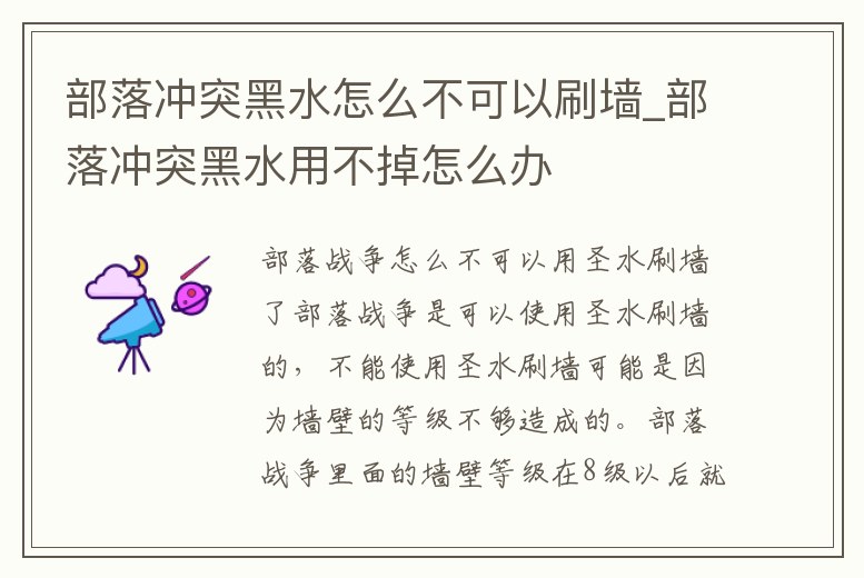 部落沖突黑水怎么不可以刷墻_部落沖突黑水用不掉怎么辦