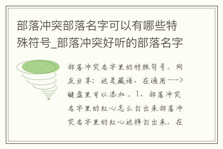 特殊符號只能復制粘貼,但是有點進去以后也不識別,會變成小方塊。部落沖突里的名字符號怎么打出來的 有的是搜狗輸入法中的表情, 有的符號是使用蘋果手機藏文輸入法輸入的 你沒有圖片分辨不了你說的那種 部落沖突名字里的特。