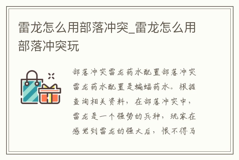 雷龍怎么用部落沖突_雷龍怎么用部落沖突玩