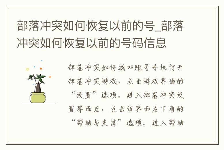 部落沖突如何恢復以前的號_部落沖突如何恢復以前的號碼信息