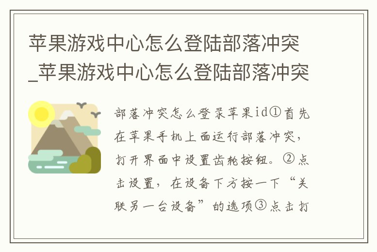 蘋果游戲中心怎么登陸部落沖突_蘋果游戲中心怎么登陸部落沖突游戲賬號