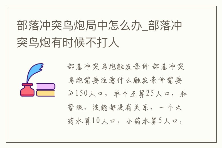 觸發條件需要≥150人口,單個王算25人口,和等級、技能都沒有關系,一個大藥水算10人口,小藥水算5人口,兵死掉還算數。鳥炮貌似會優先攻擊兵種密集的地方,尤其是蠻王帶隊的情況下,需要注意它的濺射傷害。
