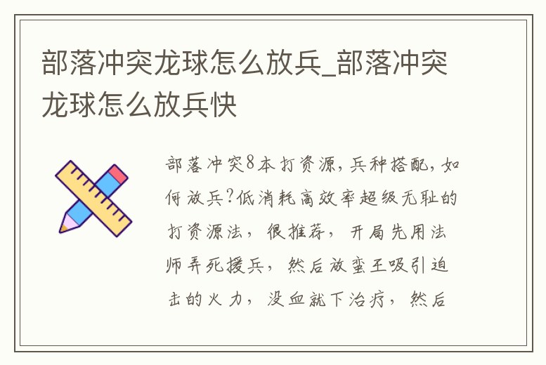 部落沖突龍球怎么放兵_部落沖突龍球怎么放兵快