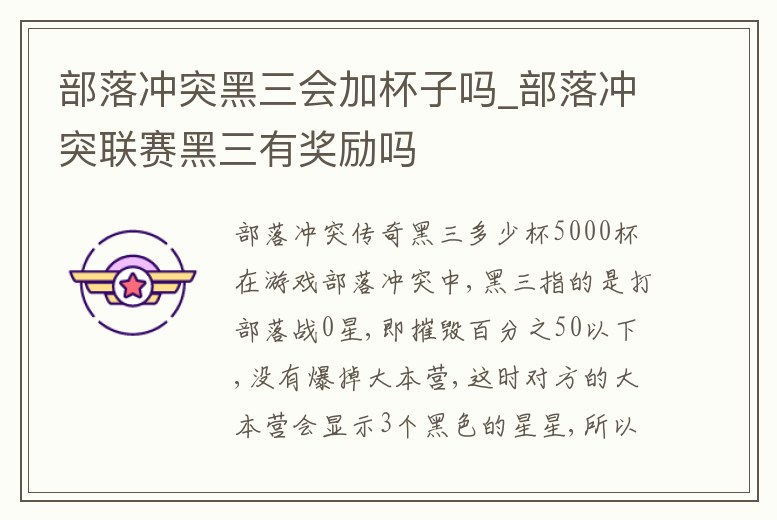 部落沖突黑三會加杯子嗎_部落沖突聯賽黑三有獎勵嗎