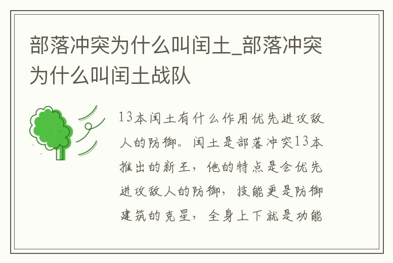 部落沖突為什么叫閏土_部落沖突為什么叫閏土戰隊