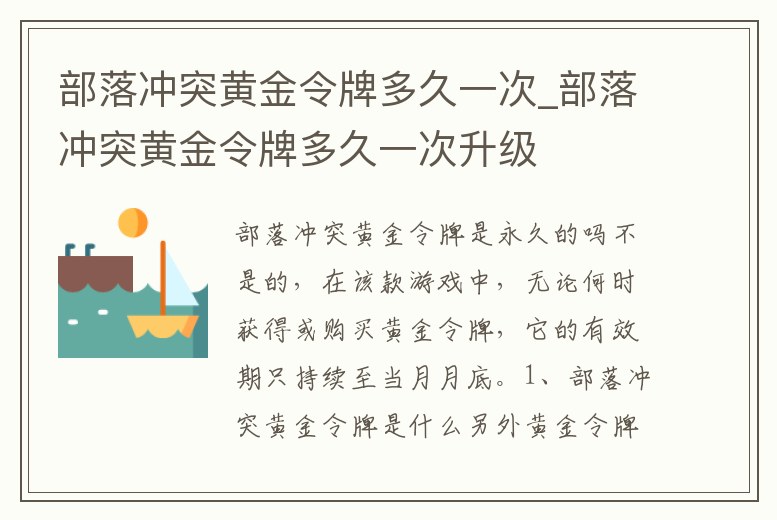 部落沖突黃金令牌多久一次_部落沖突黃金令牌多久一次升級