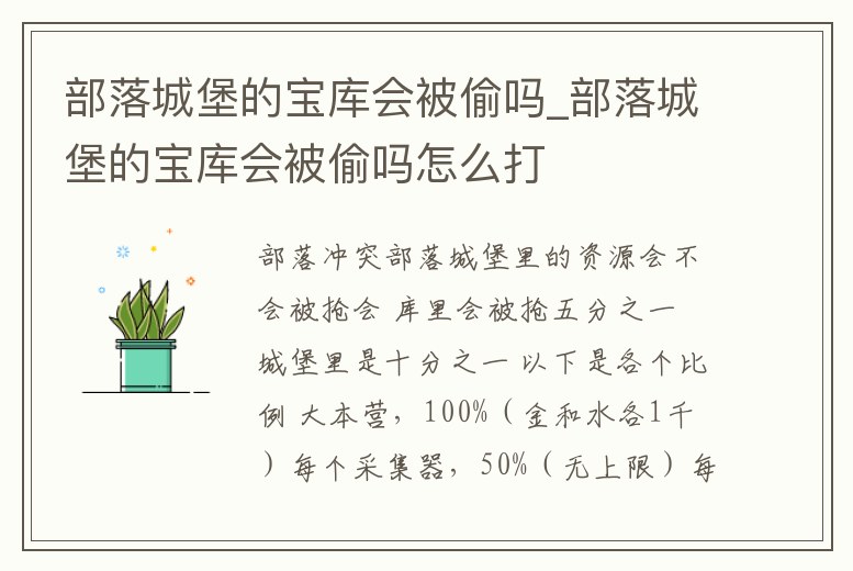 部落城堡的寶庫會被偷嗎_部落城堡的寶庫會被偷嗎怎么打