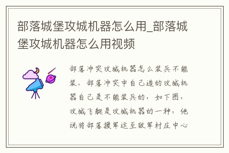 部落城堡攻城機器怎么用_部落城堡攻城機器怎么用視頻