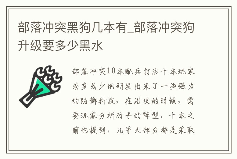 部落沖突黑狗幾本有_部落沖突狗升級要多少黑水