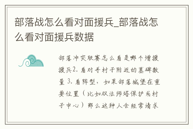 部落戰怎么看對面援兵_部落戰怎么看對面援兵數據