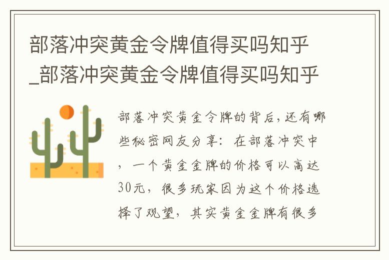 部落沖突黃金令牌值得買嗎知乎_部落沖突黃金令牌值得買嗎知乎文章