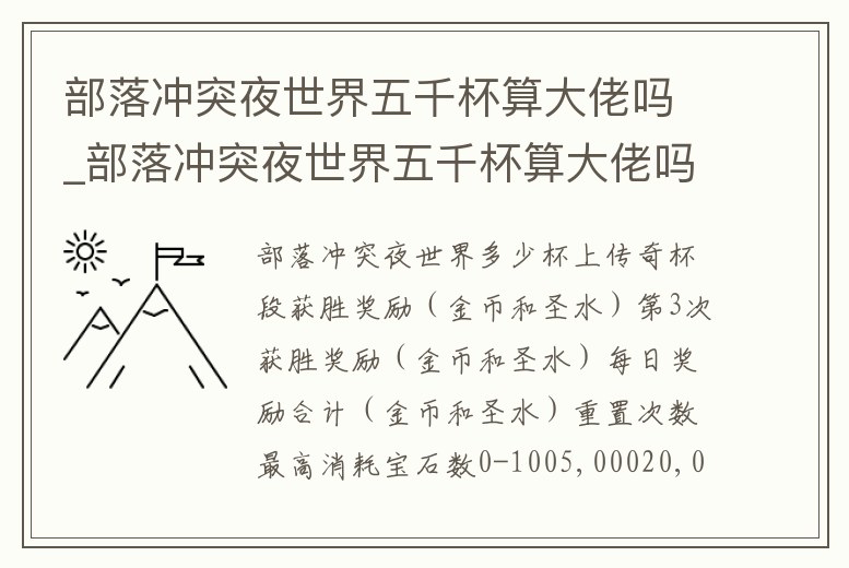部落沖突夜世界五千杯算大佬嗎_部落沖突夜世界五千杯算大佬嗎