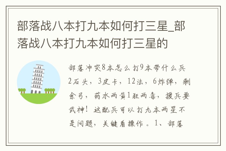 部落戰八本打九本如何打三星_部落戰八本打九本如何打三星的