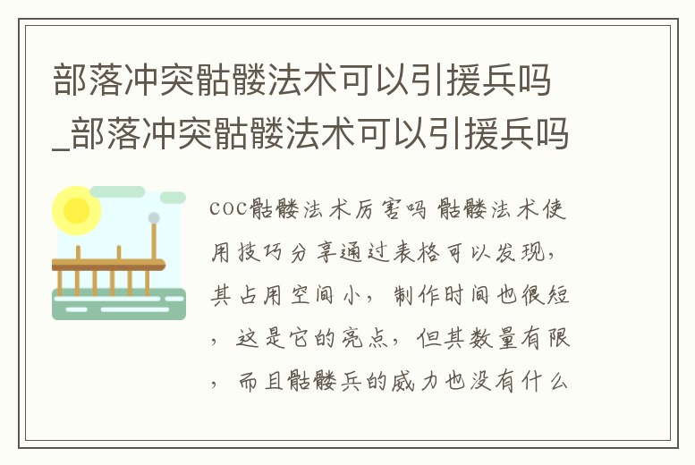 部落沖突骷髏法術可以引援兵嗎_部落沖突骷髏法術可以引援兵嗎視頻