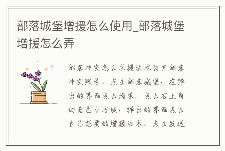 - 部落城堡增援怎么使用_部落城堡增援怎么弄