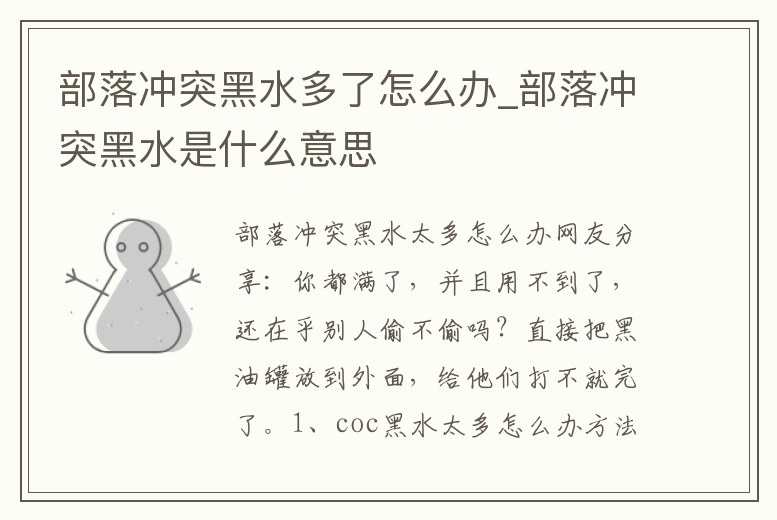部落沖突黑水多了怎么辦_部落沖突黑水是什么意思