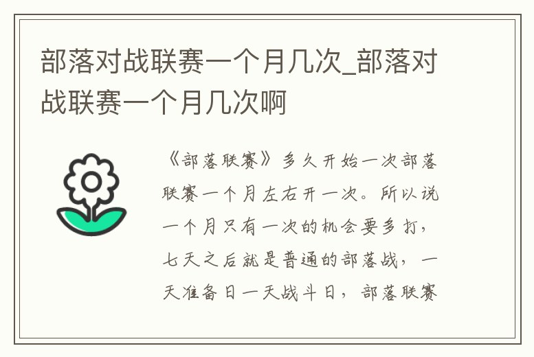 部落對戰聯賽一個月幾次_部落對戰聯賽一個月幾次啊