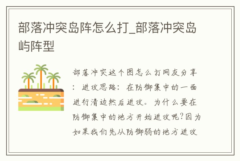 部落沖突島陣怎么打_部落沖突島嶼陣型