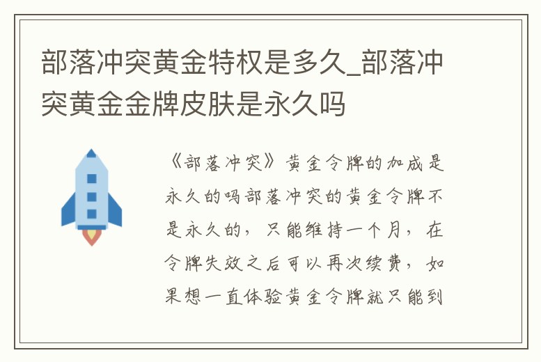 部落沖突黃金特權是多久_部落沖突黃金金牌皮膚是永久嗎
