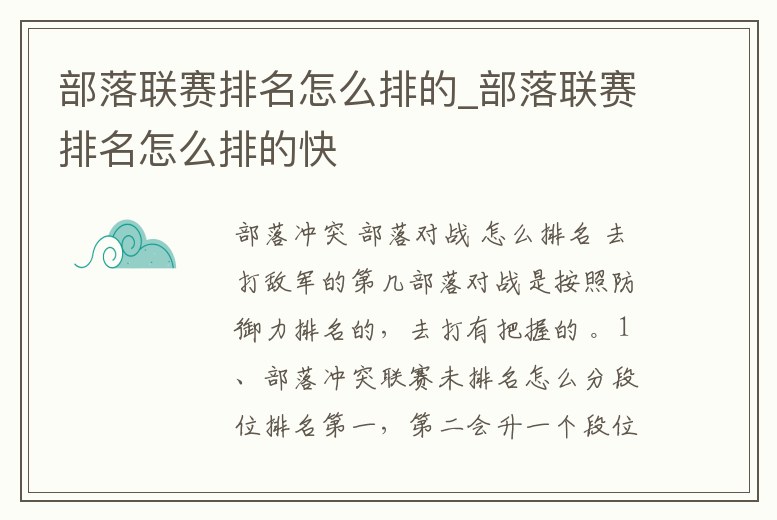 部落聯賽排名怎么排的_部落聯賽排名怎么排的快