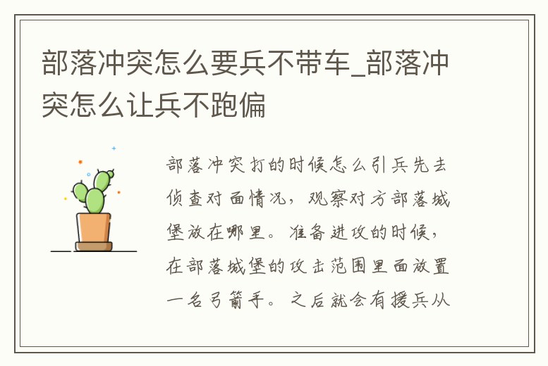 部落沖突怎么要兵不帶車_部落沖突怎么讓兵不跑偏