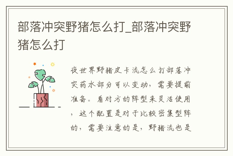 部落沖突野豬怎么打_部落沖突野豬怎么打
