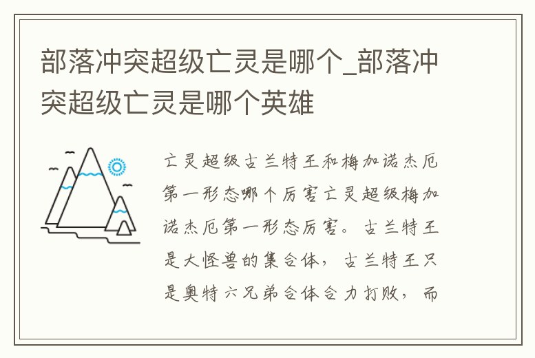 亡靈超級梅加諾杰厄第一形態厲害。古蘭特王是大怪獸的集合體,古蘭特王只是奧特六兄弟合體合力打敗,而梅加諾杰厄第一形態運用了這么強大的能量打敗的怪獸,實力便遠超過古蘭特王。超級亡靈是游戲《部落沖突》中的超級兵種,是。