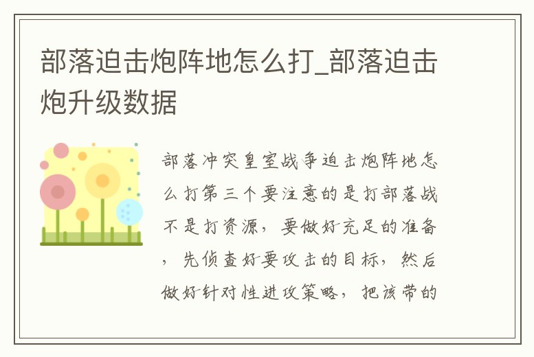 部落迫擊炮陣地怎么打_部落迫擊炮升級數據