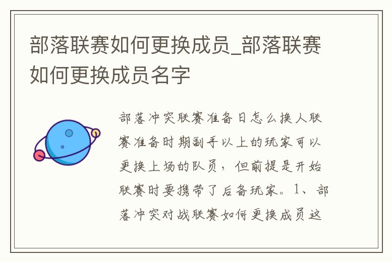 部落聯賽如何更換成員_部落聯賽如何更換成員名字