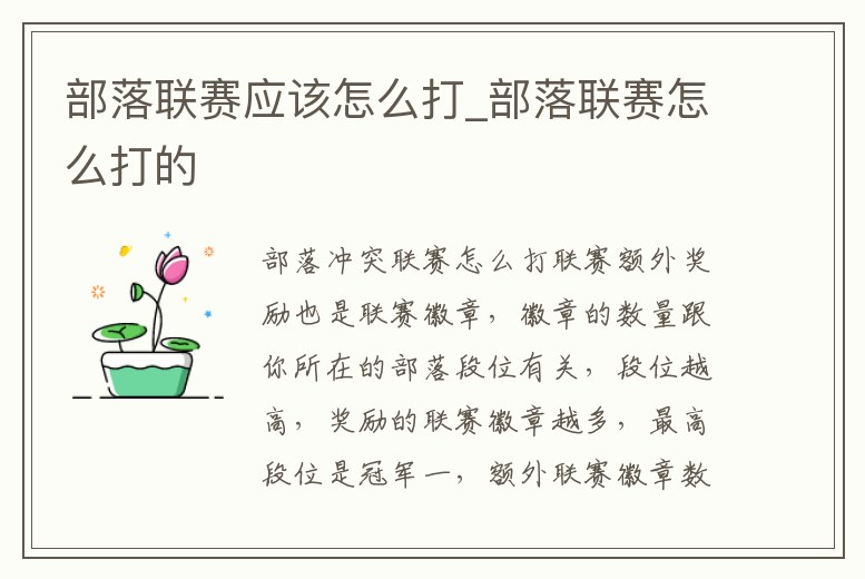 部落聯賽應該怎么打_部落聯賽怎么打的