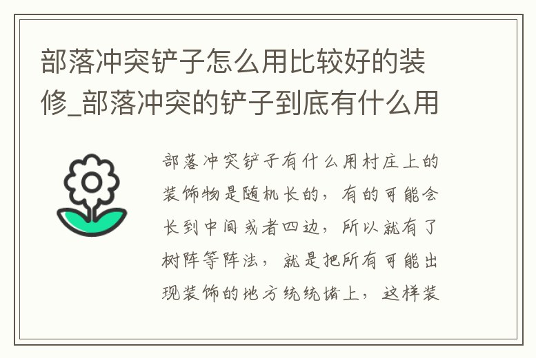 部落沖突鏟子怎么用比較好的裝修_部落沖突的鏟子到底有什么用