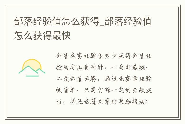- 部落經(jīng)驗值怎么獲得_部落經(jīng)驗值怎么獲得最快