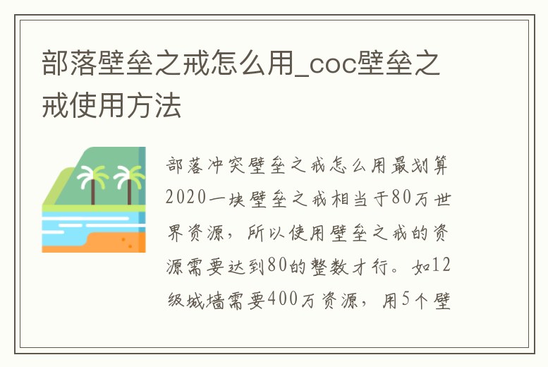 - 部落壁壘之戒怎么用_coc壁壘之戒使用方法