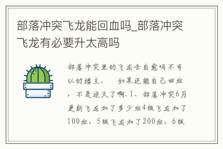 部落沖突飛龍能回血嗎_部落沖突飛龍有必要升太高嗎
