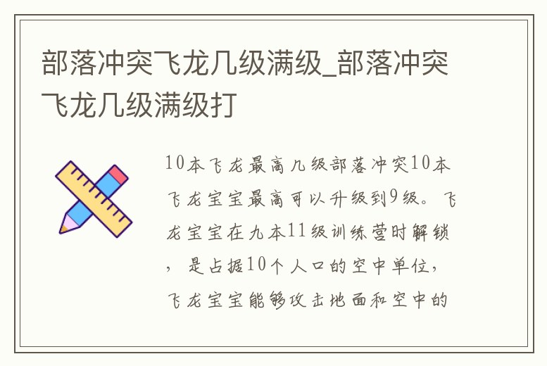 部落沖突飛龍幾級滿級_部落沖突飛龍幾級滿級打