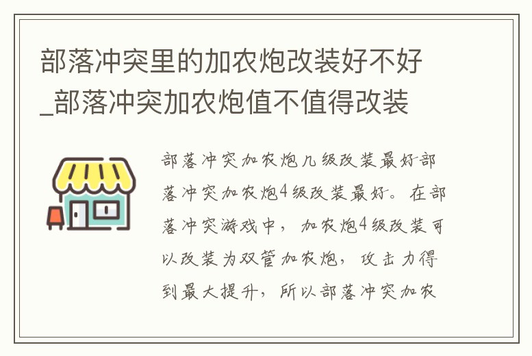 部落沖突里的加農炮改裝好不好_部落沖突加農炮值不值得改裝