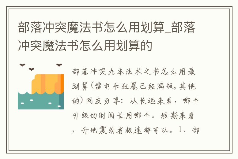 - 部落沖突魔法書怎么用劃算_部落沖突魔法書怎么用劃算的
