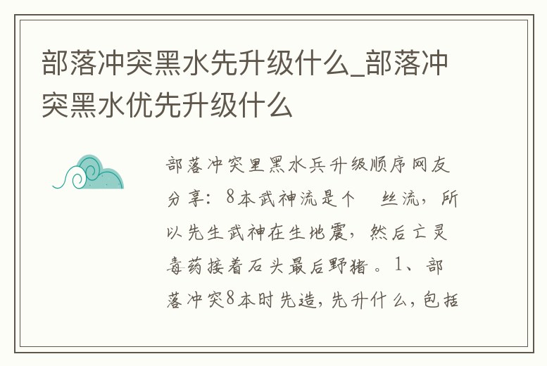 部落沖突黑水先升級什么_部落沖突黑水優先升級什么