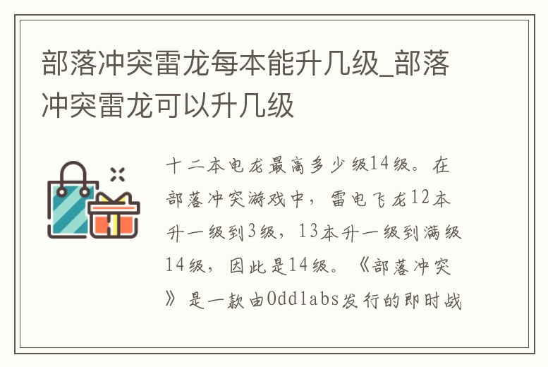 14級。在部落沖突游戲中,雷電飛龍12本升一級到3級,13本升一級到滿級14級,因此是14級。《部落沖突》是一款由Oddlabs發(fā)行的即時戰(zhàn)略游戲,類似《上帝也瘋狂》的全三維Q版的卡通風格,主要講述古代原始部族之間的瓜葛糾紛。
