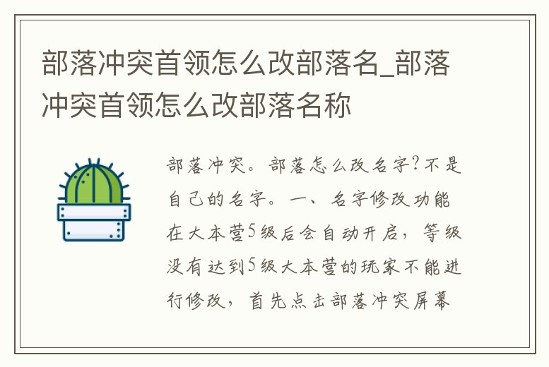 部落沖突首領怎么改部落名_部落沖突首領怎么改部落名稱