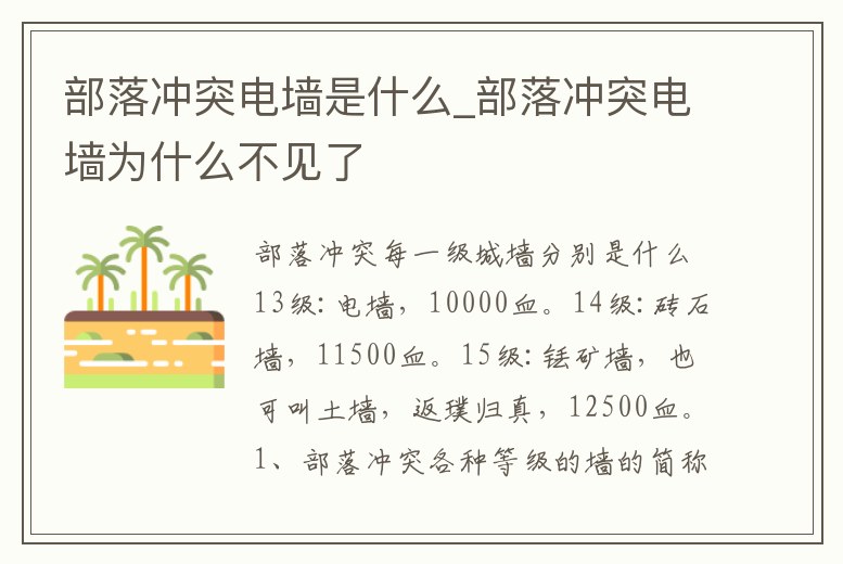 部落沖突電墻是什么_部落沖突電墻為什么不見了