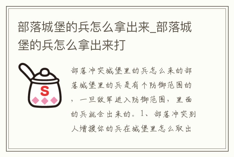 部落城堡的兵怎么拿出來_部落城堡的兵怎么拿出來打