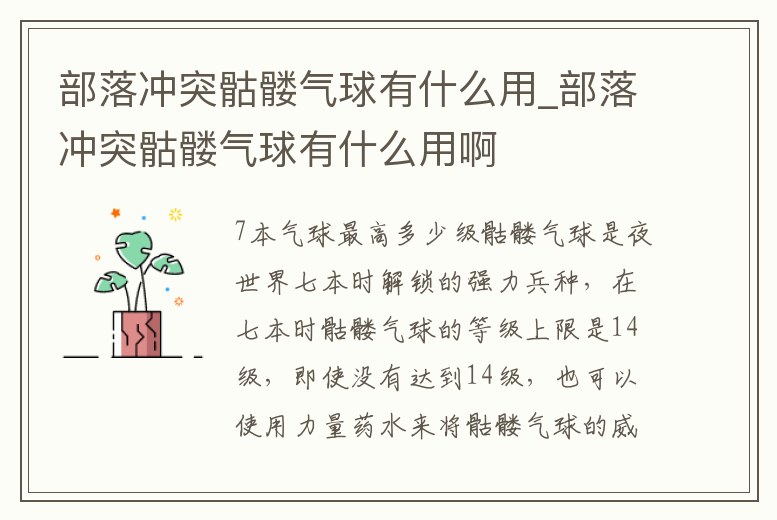 部落沖突骷髏氣球有什么用_部落沖突骷髏氣球有什么用啊