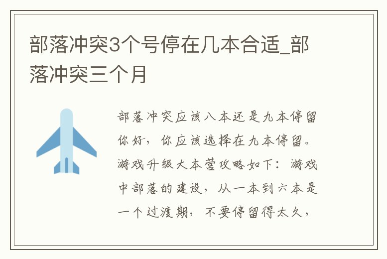 部落沖突3個號停在幾本合適_部落沖突三個月