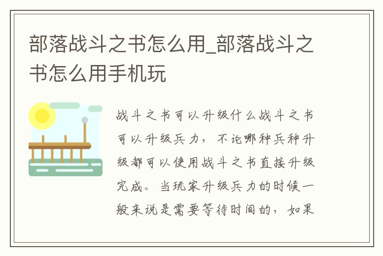 - 部落戰(zhàn)斗之書怎么用_部落戰(zhàn)斗之書怎么用手機(jī)玩