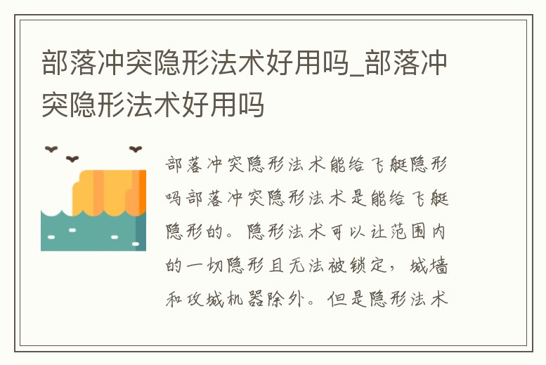 部落沖突隱形法術好用嗎_部落沖突隱形法術好用嗎