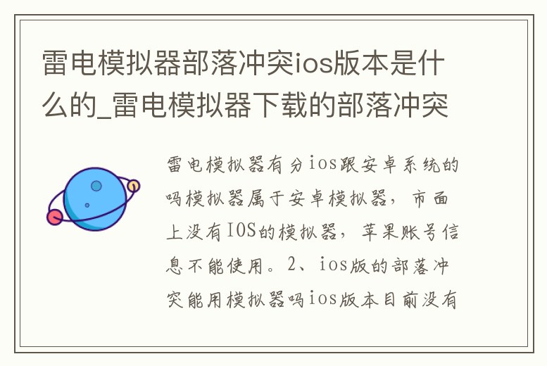 雷電模擬器部落沖突ios版本是什么的_雷電模擬器下載的部落沖突是什么版本