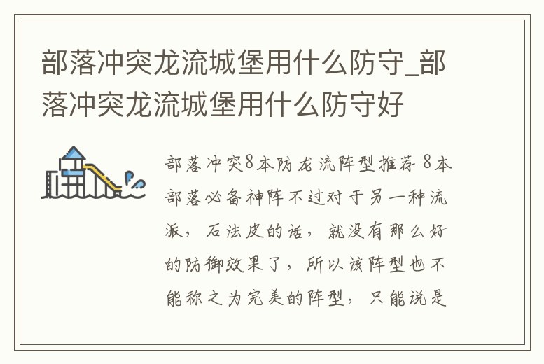 部落沖突龍流城堡用什么防守_部落沖突龍流城堡用什么防守好