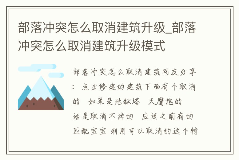 部落沖突怎么取消建筑升級_部落沖突怎么取消建筑升級模式
