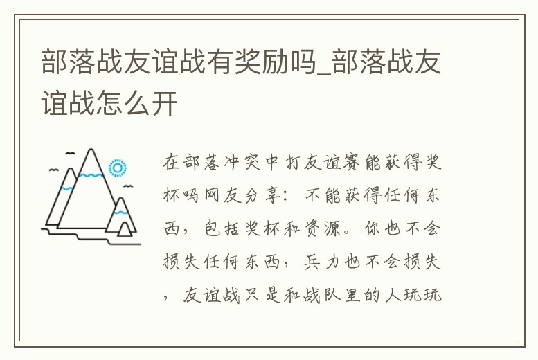 部落約戰沒有獎勵,因為是友誼戰,所以沒有獎勵也是情理之中的,這也是為了避免玩家們互刷獎勵,而且部落約戰只是提供玩家們一個模擬部落戰對戰從而提升實力或者部落之間進行友誼戰的游戲模式,相當于訓練。部落約戰官方公告:我們。